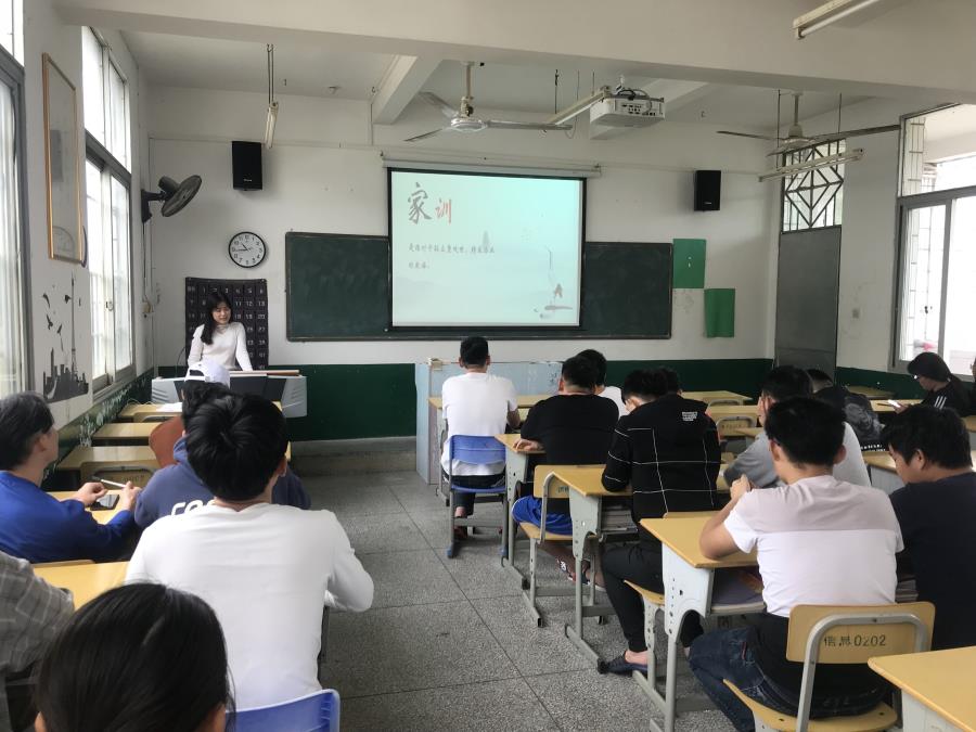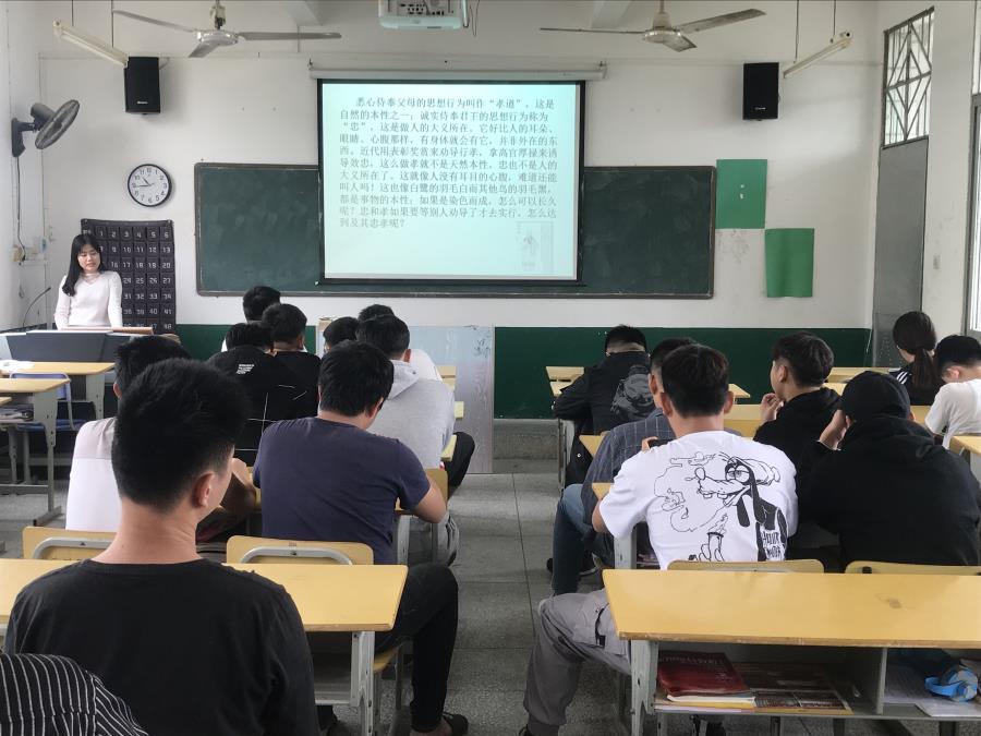 2019年4月18日下午四点半,信息工程系在16号楼406教室举行“《论忠孝》看蔡襄家训家风”道德讲坛活动。本次活动由徐龙静老师主讲,各班同学代表到场参加。