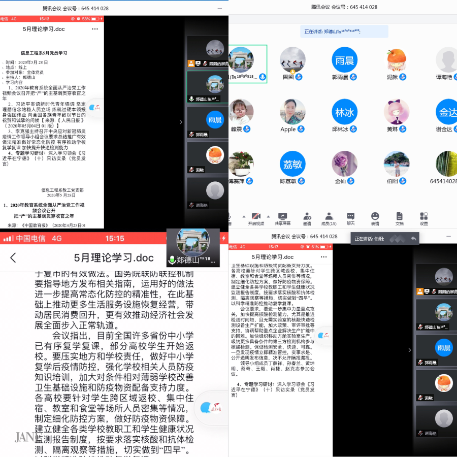 5月28日下午三点,信息工程系教工党支部召开线上理论学习(扩大)会议,会议由教工党支部书记郑德山老师主持,信息工程系全体教师党员参加。