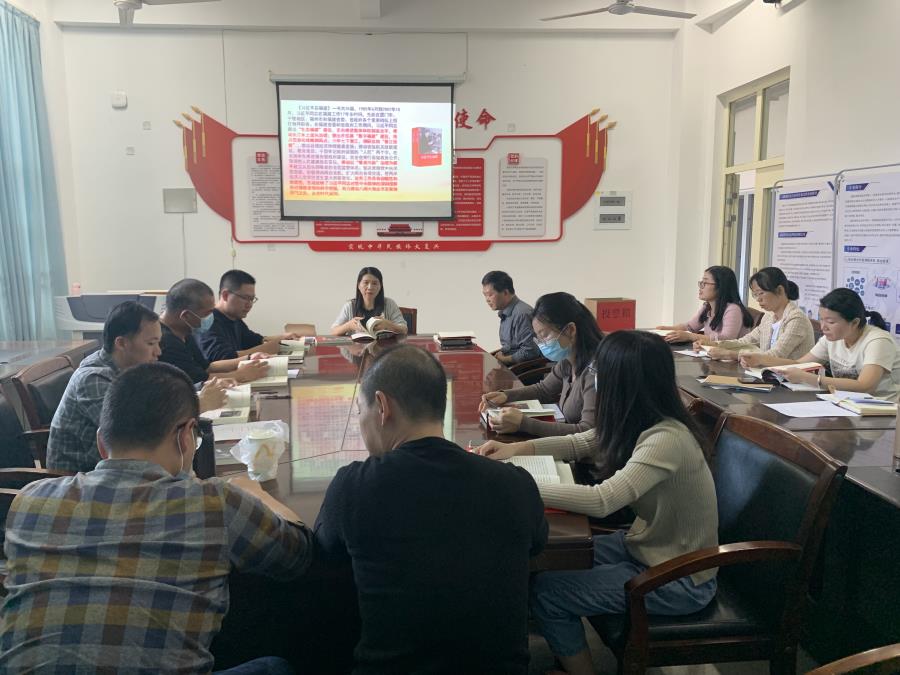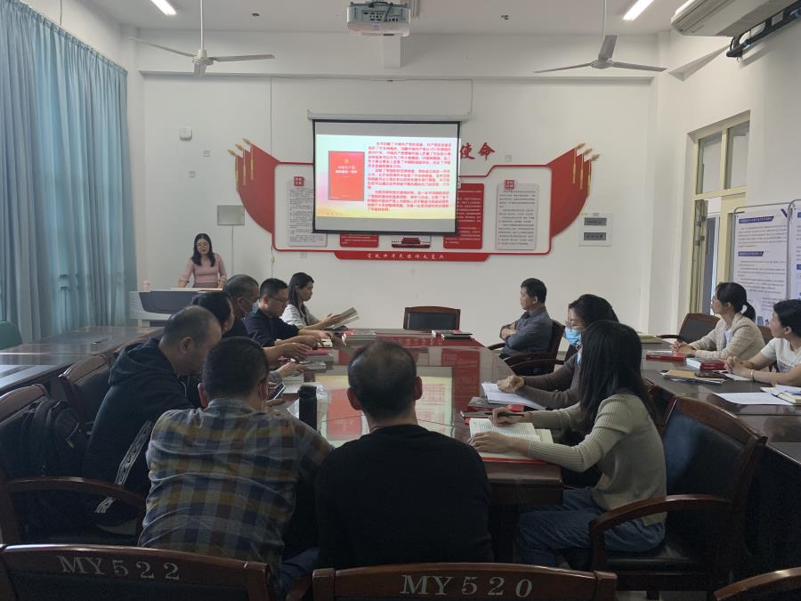 本次理论学习会由徐龙静老师主持。徐老师就两本书进行简要介绍。接着党总支傅赛萍书记带领全体师生党员集体学习《中国共产党组织建设一百年》第十四章“坚持用习近平新时代中国特色社会主义思想武装全党”。傅书记谈到“总结历史是为了更好地开辟未来”,十八大以来党中央以上率下推动全党大学习,回顾“党的群众路线教育实践活动”、“三严三实”专题教育、“两学一做”学习教育、“不忘初心、牢记使命”主题教育以及“党史学习教育”开展情况。再接着傅书记带领与会同志学习《习近平在福建》(上)第一部分陈明义和王一士采访内容。最后,全体党员同志交流心得体会。大家纷纷表示被习近平总书记率先带头、亲身示范、勇于担当的工作作风,心系基层、心系群众、心系民生的赤诚情怀深深触动。