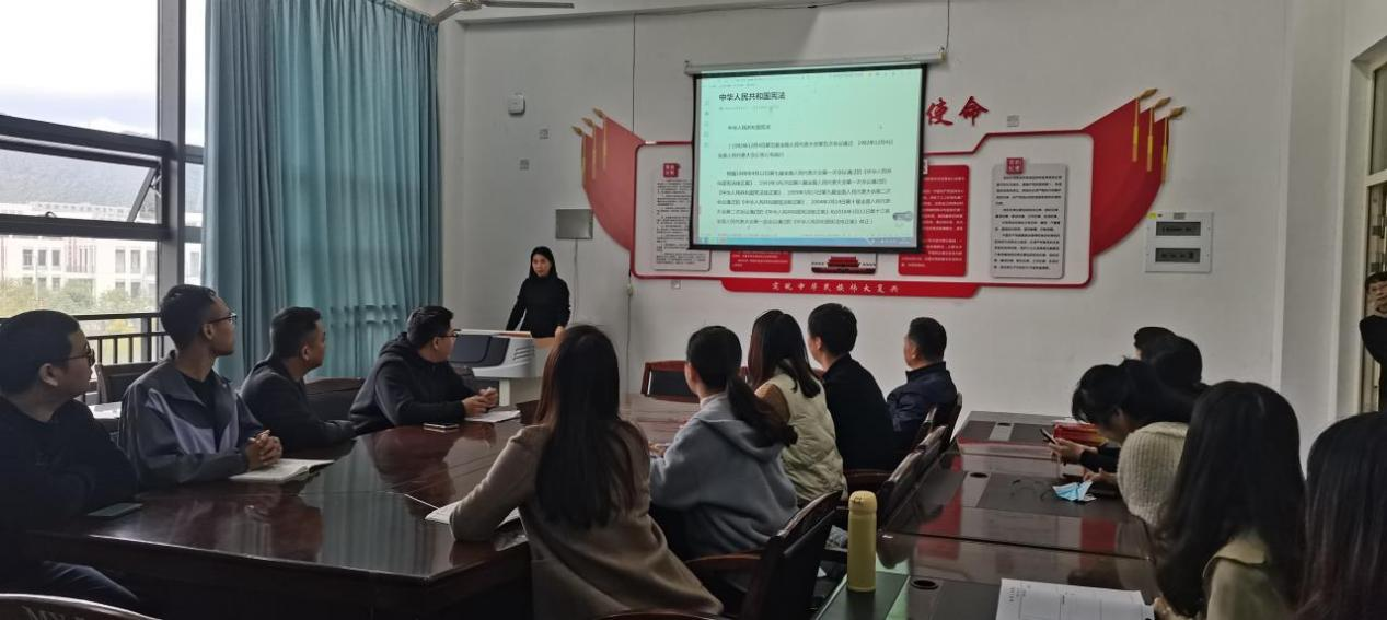 为深入开展宪法宣传教育,进一步弘扬宪法精神、维护宪法权威。2022年12月6日上午,信息工程系在信息楼北307会议室开展全体教职工宪法专题学习会,由系党总支书记傅赛萍主讲。