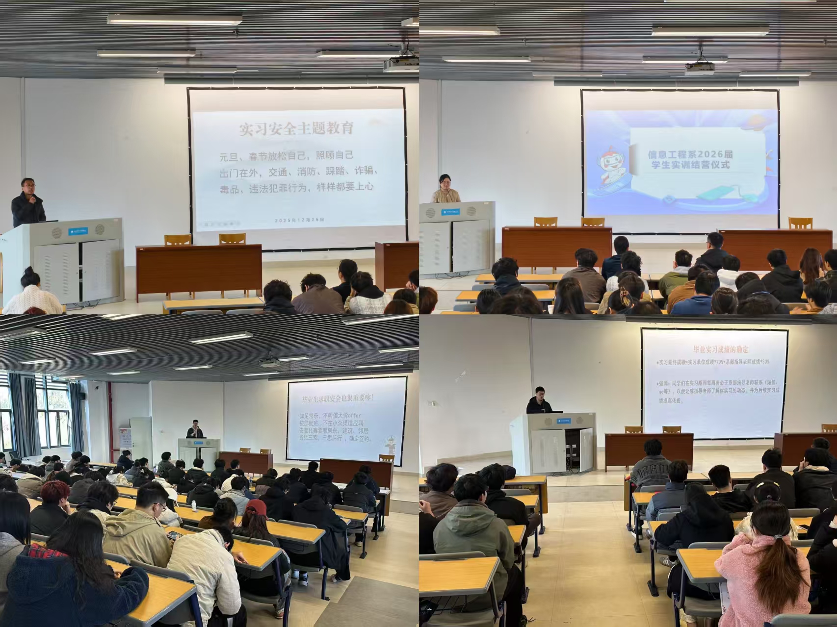 2025年12月26日和2026年1月8日,信息工程系物联网应用技术、计算机应用技术、信息安全技术应用、虚拟现实技术应用、软件技术等专业的实训结营仪式在仙游校区举行。两次结营由软通动力、贤铭教育、国科和新大陆四家企业分别开展,百名学子完成了从理论到实践的转化,夯实职场技能基础。