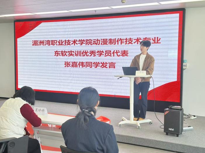 表彰结束后,大数据技术专业、动漫制作技术专业实训优秀学员代表依次登台发言。他们衷心感谢实训期间各位老师的悉心指导与同学们的互助同行,分享了从理论学习到实践操作的成长感悟,以及在技能提升、团队协作中的收获与体会,言语间满含对实训经历的珍视与对未来职业道路的期许。