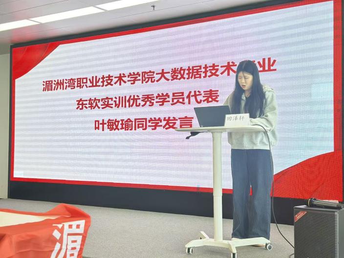近期,信息工程系2023级大数据技术和动漫制作技术专业实训圆满收官,结营仪式于福州市长乐实训基地隆重举行。湄洲湾职业技术学院信息工程系副主任陈峰震、副主任周向荣、大数据技术专业主任吴婷婷、辅导员王天佑,东软教育科技集团交付管理中心项目经理田泽轩、福州基地教务崔智深及全体实训学员共同出席,仪式由田泽轩老师主持。