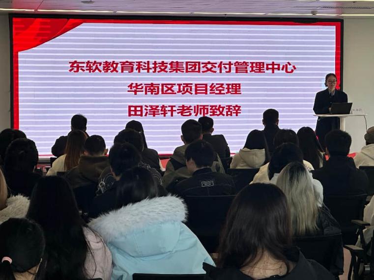 东软教育科技集团交付管理中心项目经理田泽轩向同学们顺利完成实训表示热烈祝贺。结合当前就业市场信息繁杂的现状,他着重强调求职安全的重要性,叮嘱学子务必提高警惕,仔细辨别招聘单位真实性,防范不法分子利用求职急切心情设置的招聘骗局。他建议,学子应通过学校职业指导中心、知名招聘网站、企业官方网站等正规渠道获取招聘信息,谨慎选择实习单位,切实保护自身权益。