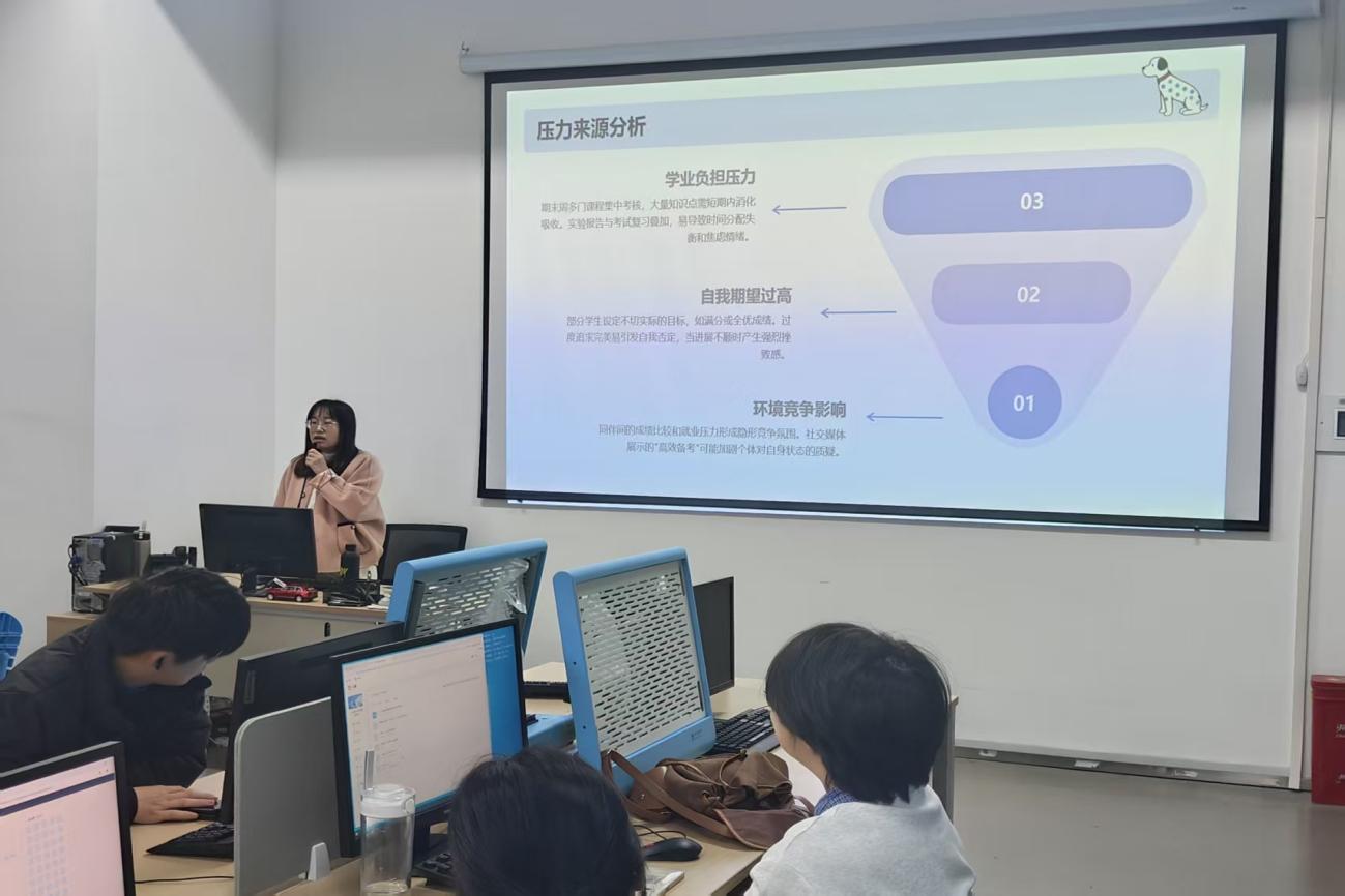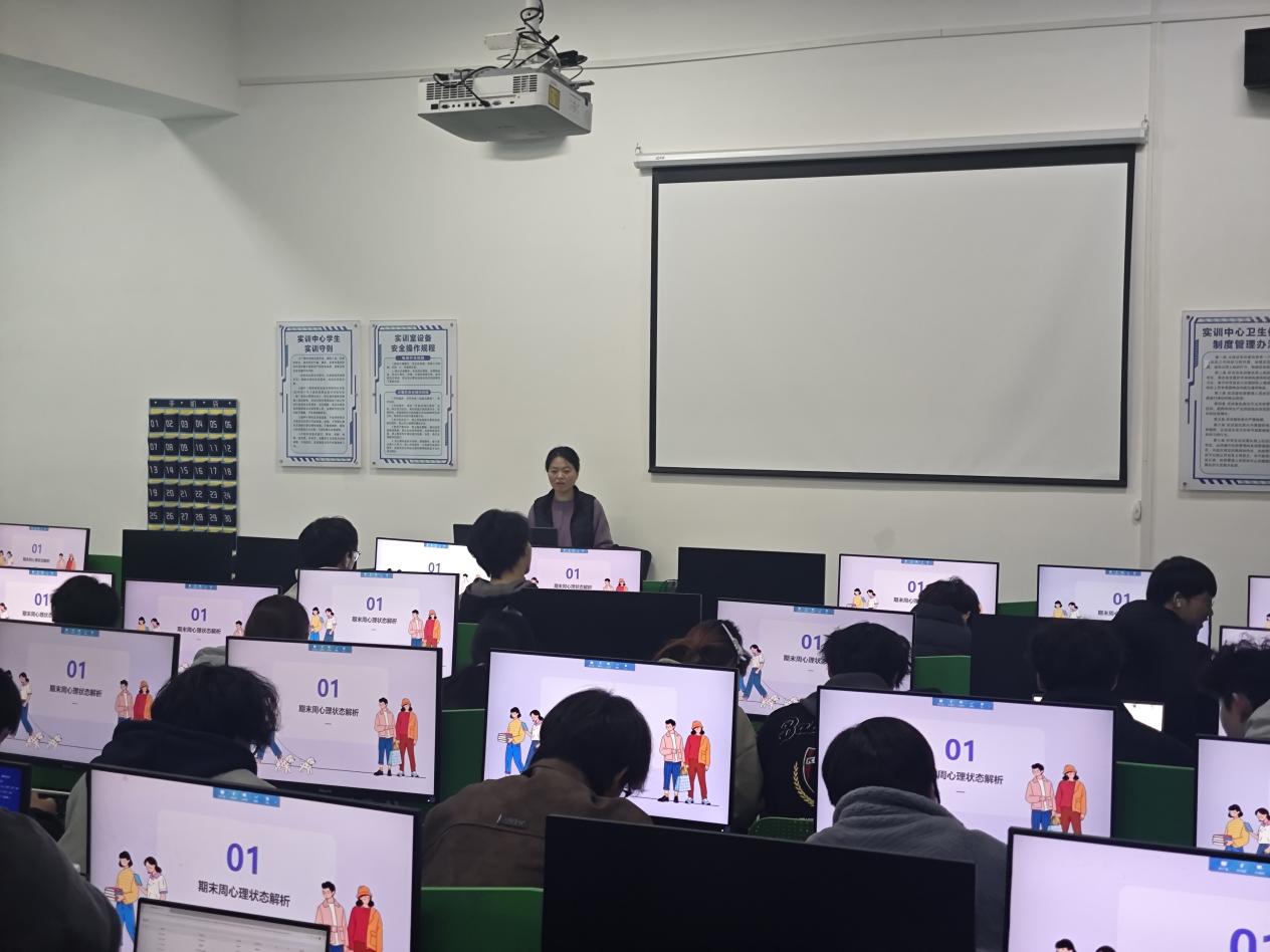 辅导员开展“心理解码・期末同行”主题班会现场照