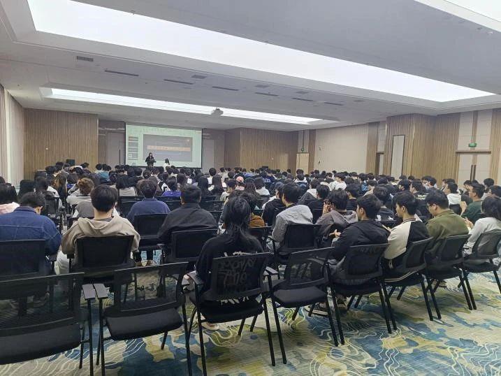 各企业负责人轮流上台向学生们进行职位介绍,负责人们耐心讲解了公司的企业文化以及职位要求等。同学们精问细听,招聘者深思酌言,双方一问一答,现场氛围良好。