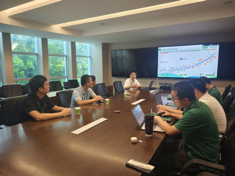 IT部负责人肖天飞经理为调研团队做了详尽分享,重点介绍了三棵树在数字化转型道路上的探索与实践,特别是公司基于业务需求自主研发的多款数据产品,这些产品在优化供应链、精准营销、提升客户服务体验等方面发挥了显著价值。