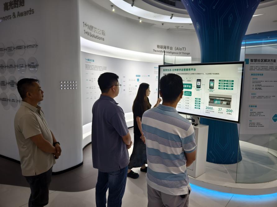 在立林科技,郑健副书记一行首先参观了企业的发展陈列馆与现代化智能展厅,直观感受了企业从初创到引领行业的技术演进历程,并重点观摩学习了其先进的智慧社区管理平台、智能家居系统的设计与应用。