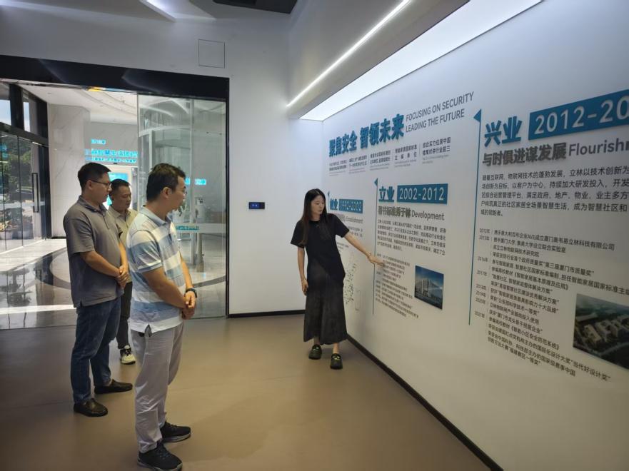 调研团队的第二站是厦门立林科技有限公司。立林科技是国内知名的智慧社区、智慧家庭整体解决方案设备提供商,主要从事楼宇对讲、智能家居系统的研发、生产、销售与服务,是国家级高新技术企业和国家创新型试点企业,产品行销海内外。