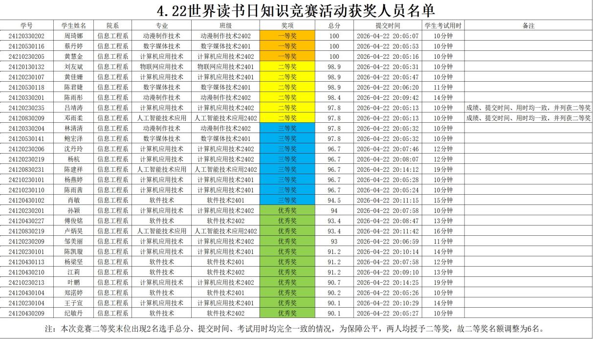 书香浸润心灵,知识守护成长。为紧扣4·23世界读书日主题,推动阅读文化与心理健康教育深度融合,湄洲湾职业技术学院信息工程系联合“一站式”学生社区于2026年4月22日晚在信息楼南201教室,顺利举办“以书润心·与智同行”大学生心理健康阅读分享暨知识竞答活动。信息工程系学子踊跃参与,在书香分享中疗愈心灵,在知识竞答中提升素养,共同完成一场温暖而充实的心灵成长之旅。