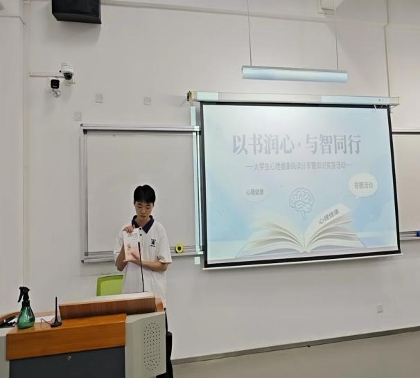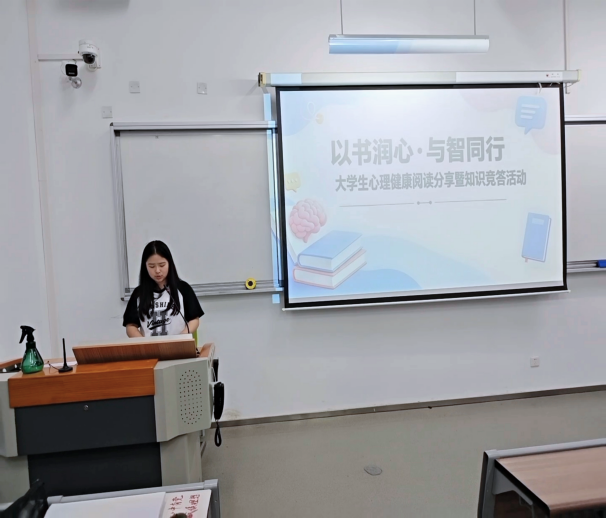 活动伊始,同学们有序签到入场,工作人员清晰宣读活动规则与注意事项,现场氛围庄重又温馨。苏萍萍老师发表开场致辞,结合世界读书日的内涵,深刻阐释阅读对情绪舒缓、心态调适的重要意义,点明本次“阅读分享+知识竞答”双融合活动的育人初衷,鼓励大家以书为友、以智养心,主动关注心理健康、学会科学自我关怀。